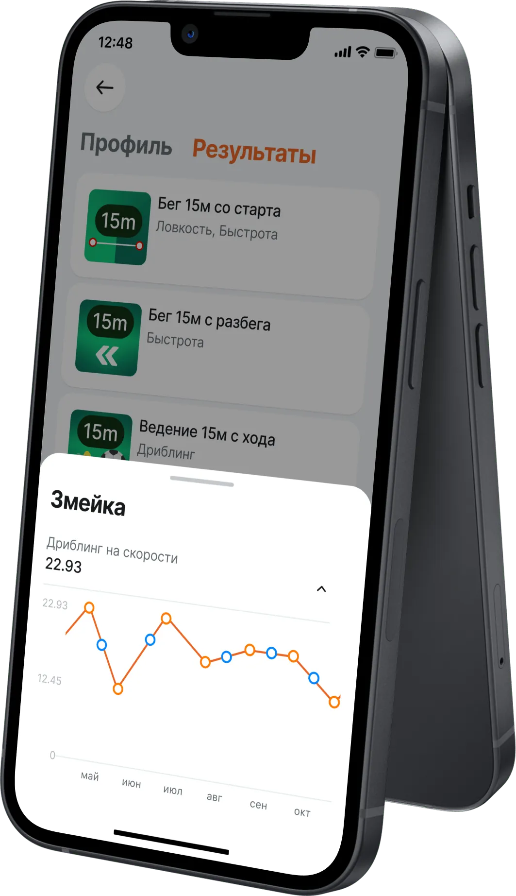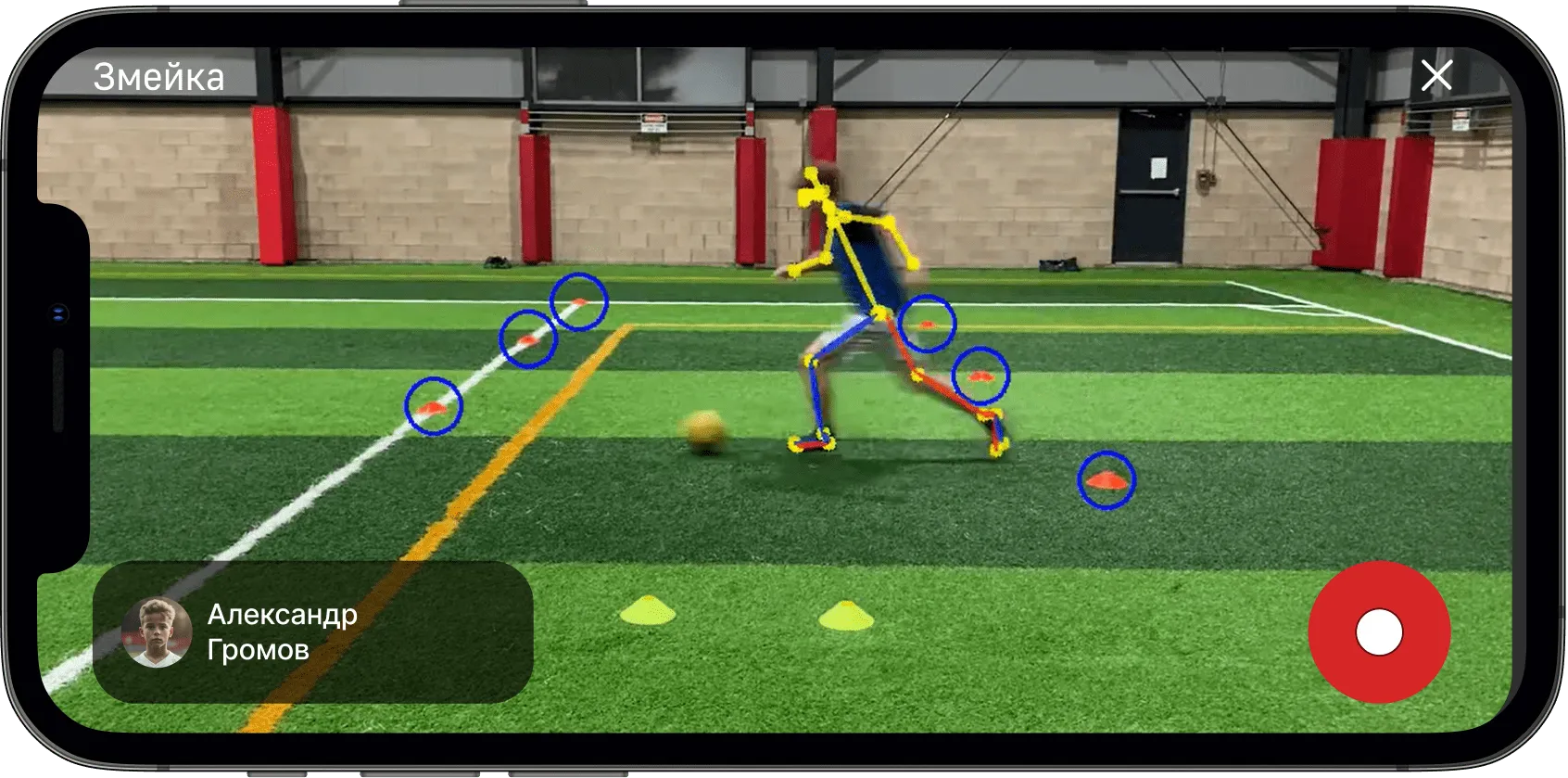 Используя только мобильные телефоны и штативы тренеры могут быстро тестировать и получать точные данные футболистов, сравнивать их с нормативами, определять и развивать таланты